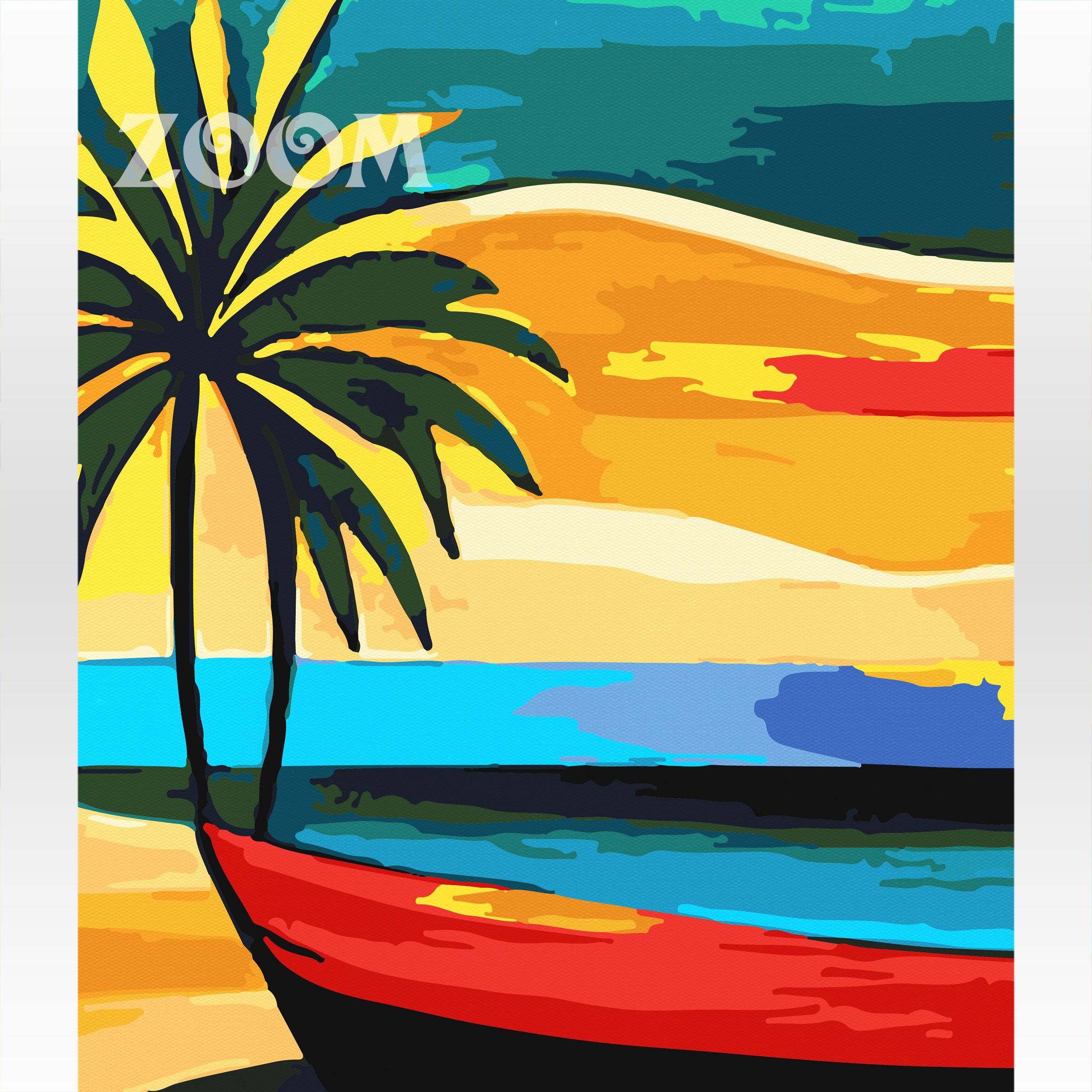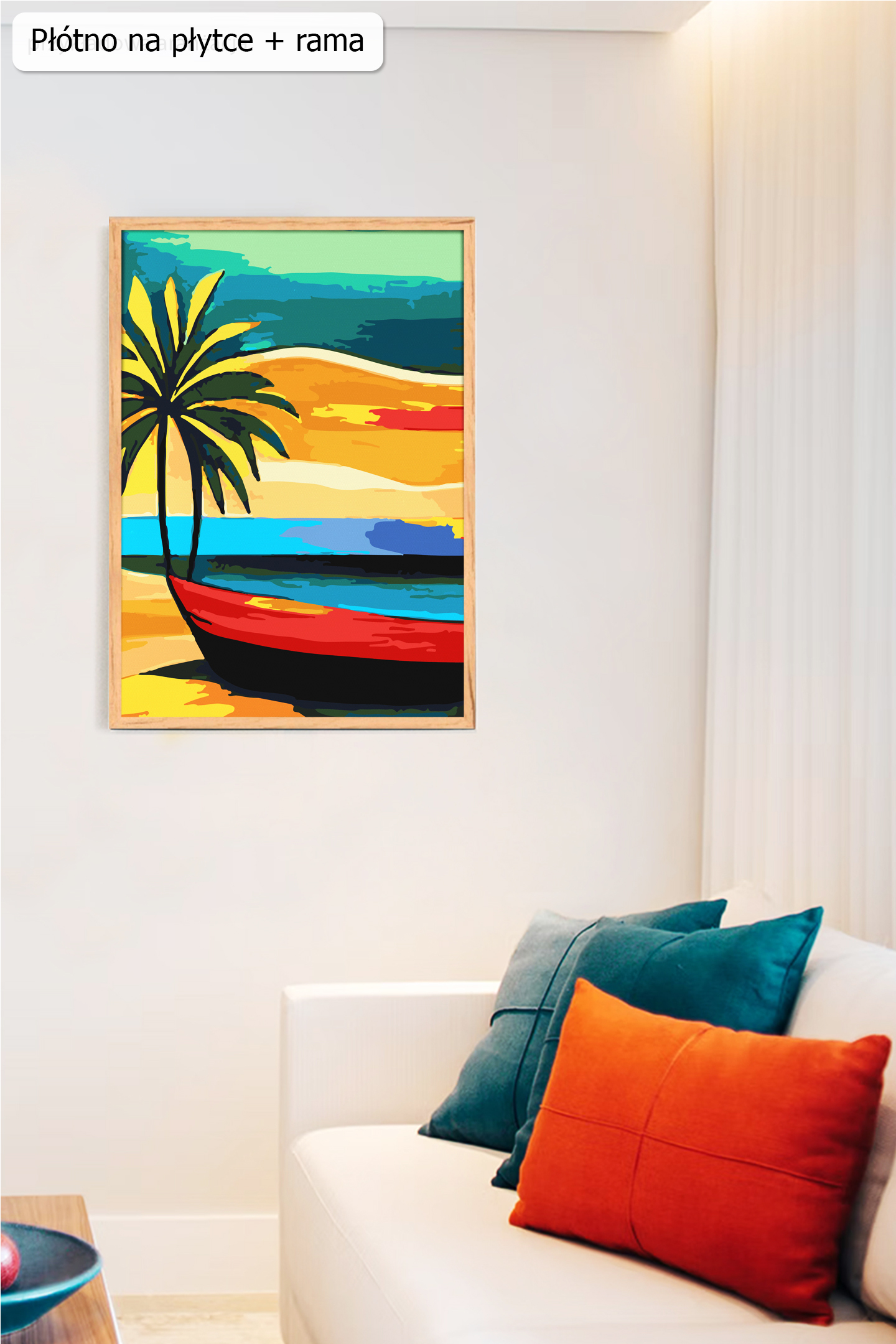 Malowanie po numerach ze sklepu akrylowo, obraz Barwy wakacji. Łódź, palmy, plaża… wakacje to cudowne chwile i wspomnienia. Bardzo miło jest nam wracać myślami do czasu wypoczynku i relaksu. Dzięki malowanemu numerami obrazowi Barwy wakacji można nie tylko oddać się sztuce, ale przy okazji powspominać. Motyw jest bardzo kolorowy i ożywiający. Jego wykonanie nie przysporzy nikomu kłopotów. Poziom trudności wykonania oszacowaliśmy na średni z tendencją do łatwego. W zestawie 24 różne kolory. Malowany po numerach obraz Barwy wakacji polecamy początkującym i dzieciom. W tym obrazie zastosowaliśmy cyfry od 0 do 9 i litery alfabetu do oznakowania pól. Dzięki takiemu innowacyjnemu podejściu łatwiej będzie Państwu wykonać dzieło. Polecamy wszystkim pasjonatom malowania po numerach!