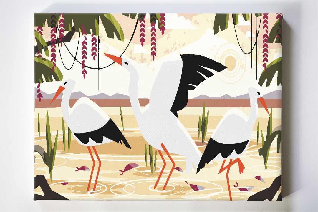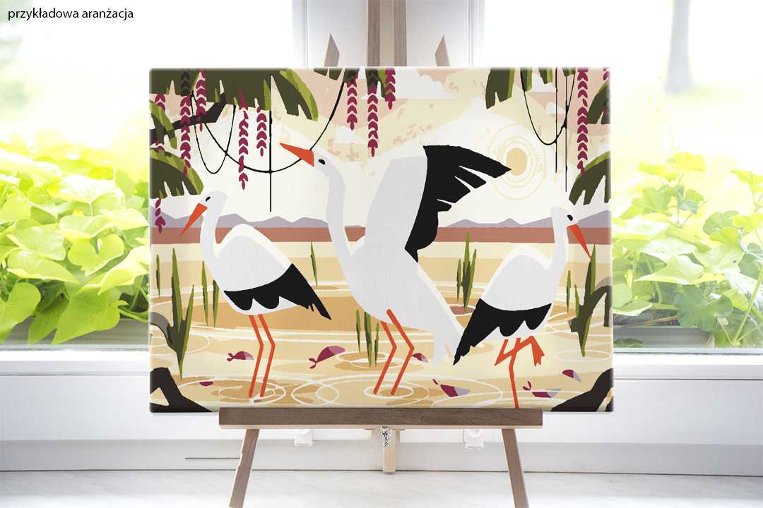 Malowanie po numerach Bociany to kolejny polski akcent w malowanie po numerach wprowadzony przez akrylowo. Te tak lubiane przez Polaków ptaki możesz teraz namalować samodzielnie dzięki naszej marce. Bociany będą doskonałym prezentem dla każdego dziecka. Obraz jest bardzo przyjemny i ciepły w odbiorze. Kolory są stonowane, a tam gdzie trzeba żywe i podkreślające wybrane fragmenty płótna. Stylem wykonania pasują one do naszego Tukana czy też Dwóch flamingów. Polecamy kupić w zestawie ze wspominanymi obrazami.