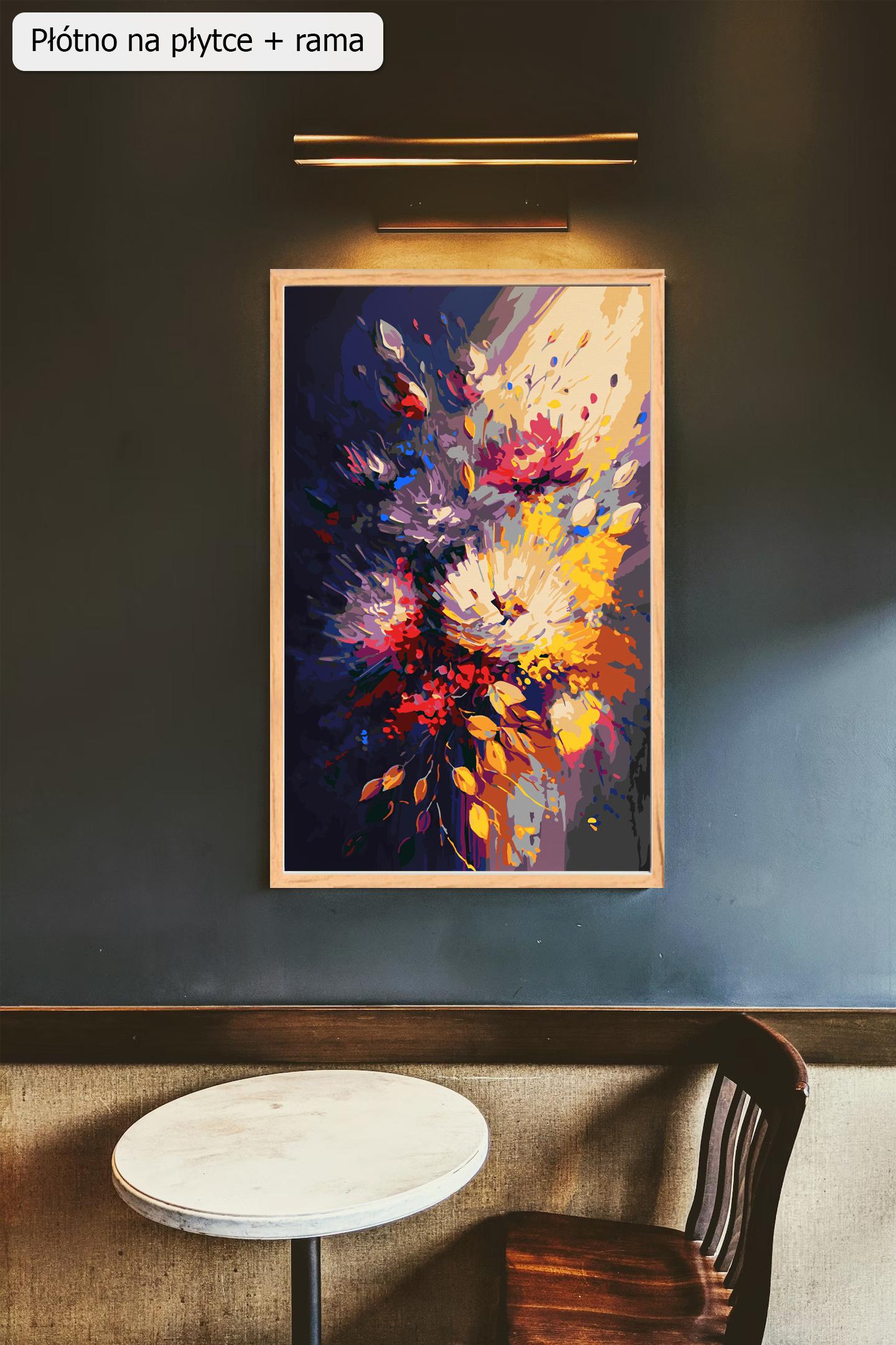 Bukiet w blasku- malowany numerami obraz do samodzielnego wykonania ze sklepu akrylowo. Przedstawiamy Państwu jeden z naszych ulubionych motywów, kwiaty w formie panoramy. Bukiet w blasku to cudowny pod każdym względem obraz w formacie 40 x 60 cm. Imponuje on nie tylko rozmiarem, ale przede wszystkim tym co sami Państwo stworzycie. Kompozycja jest niepowtarzalna, tak kształtem jak i kolorem. Wzór malowany numerami powstał w całości w naszej manufakturze obrazów po numerach. Zestaw zawiera 24 różne kolory, bardzo wysokiej jakości płótno i cztery pędzelki. Bukiet w blasku oferujemy na blejtramie, płytce z ramą (drewnianą sosnową) lub płytce bez ramy. To dla tych osób, które dysponują własną dopasowaną rozmiarami ramą. Zachęcamy do zakupu. Na pewno się nie zawiedziecie. Serdecznie polecamy nasz obraz po numerach na prezent. W tym obrazie zastosowaliśmy cyfry od 0 do 9 i litery alfabetu do oznakowania pól. Dzięki takiemu innowacyjnemu podejściu łatwiej będzie Państwu wykonać dzieło. Polecamy wszystkim pasjonatom malowania po numerach!