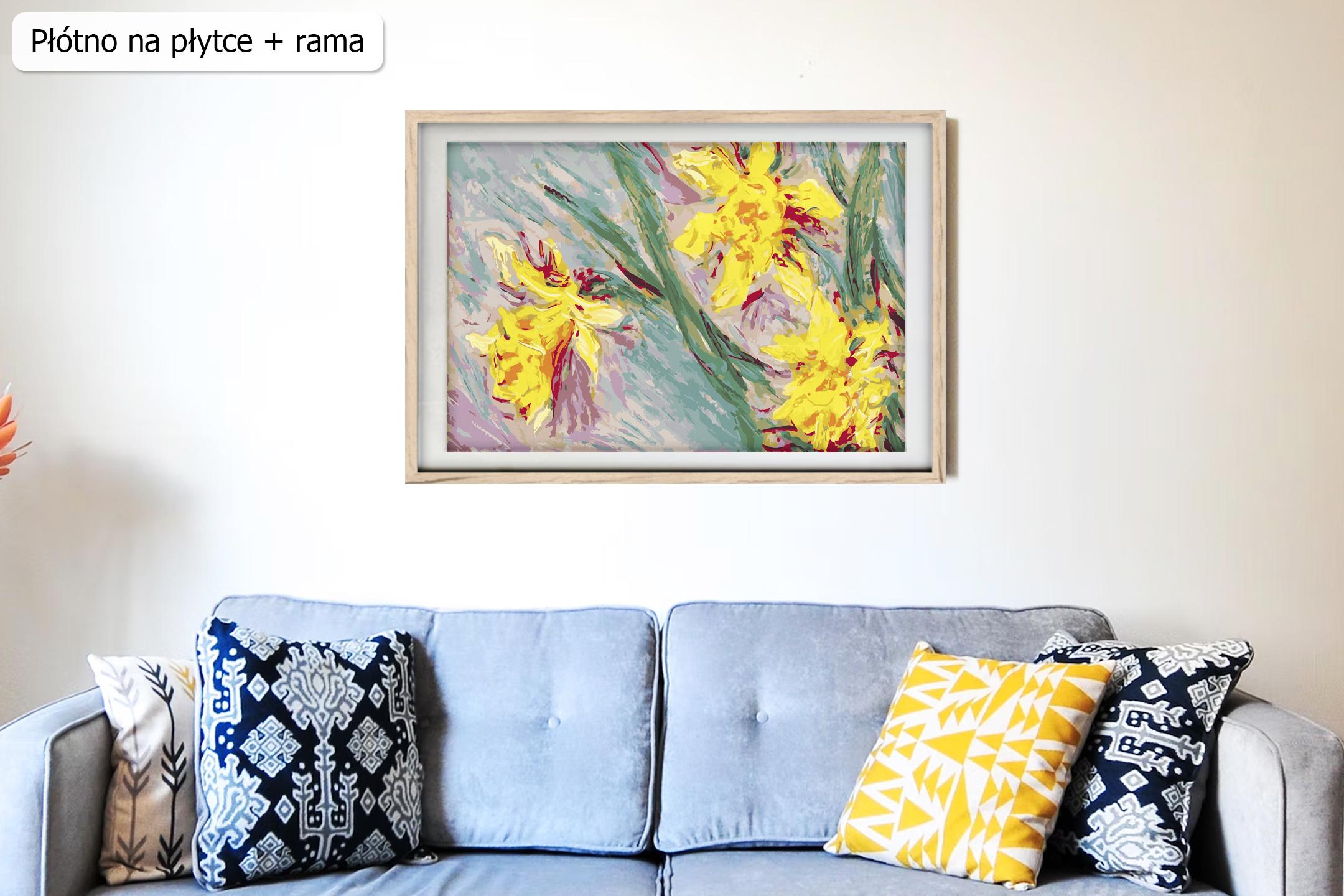 Malowanie po numerach ze sklepu akrylowo, panorama Claude Monet Żonkile. Pierwszy w naszej historii polskiego malowania po numerach obraz Claude’a Moneta. Wybraliśmy na start naszej przygody z tym wybitnym malarzem jeden z jego najsławniejszych i najbardziej przyciągających uwagę obraz, Żonkile. Akrylowo przygotowało dla Państwa wersję jeszcze bardziej nasyconą kolorystycznie niż jest to w rzeczywistości. Zmieniliśmy także nieco proporcję obrazu i jego zakres. Oryginał jest bardzo długi i niewysoki. Claude Monet był francuskim przedstawicielem i pomysłodawcą impresjonizmu. Z tego choćby powodu warto zawiesić na ścianie jedno z jego dzieł. Malowany po numerach obraz Claude Monet Żonkile jest dość trudny w wykonaniu. Za to efekt końcowy jest wspaniały. Gotowe dzieło przygotujecie Państwo stosując 24 różne barwy oraz dodatkowo kolor czary i biały. Obraz znakomicie nadaje się na prezent dla pasjonatów malarstwa. Jak każdy malowany po numerach motyw, tak i ten uspokaja, daje wytchnienie od codzienności. A kwiaty… są piękne. W tym obrazie zastosowaliśmy cyfry od 0 do 9 i litery alfabetu do oznakowania pól. Dzięki takiemu innowacyjnemu podejściu łatwiej będzie Państwu wykonać dzieło. Polecamy wszystkim pasjonatom malowania po numerach!