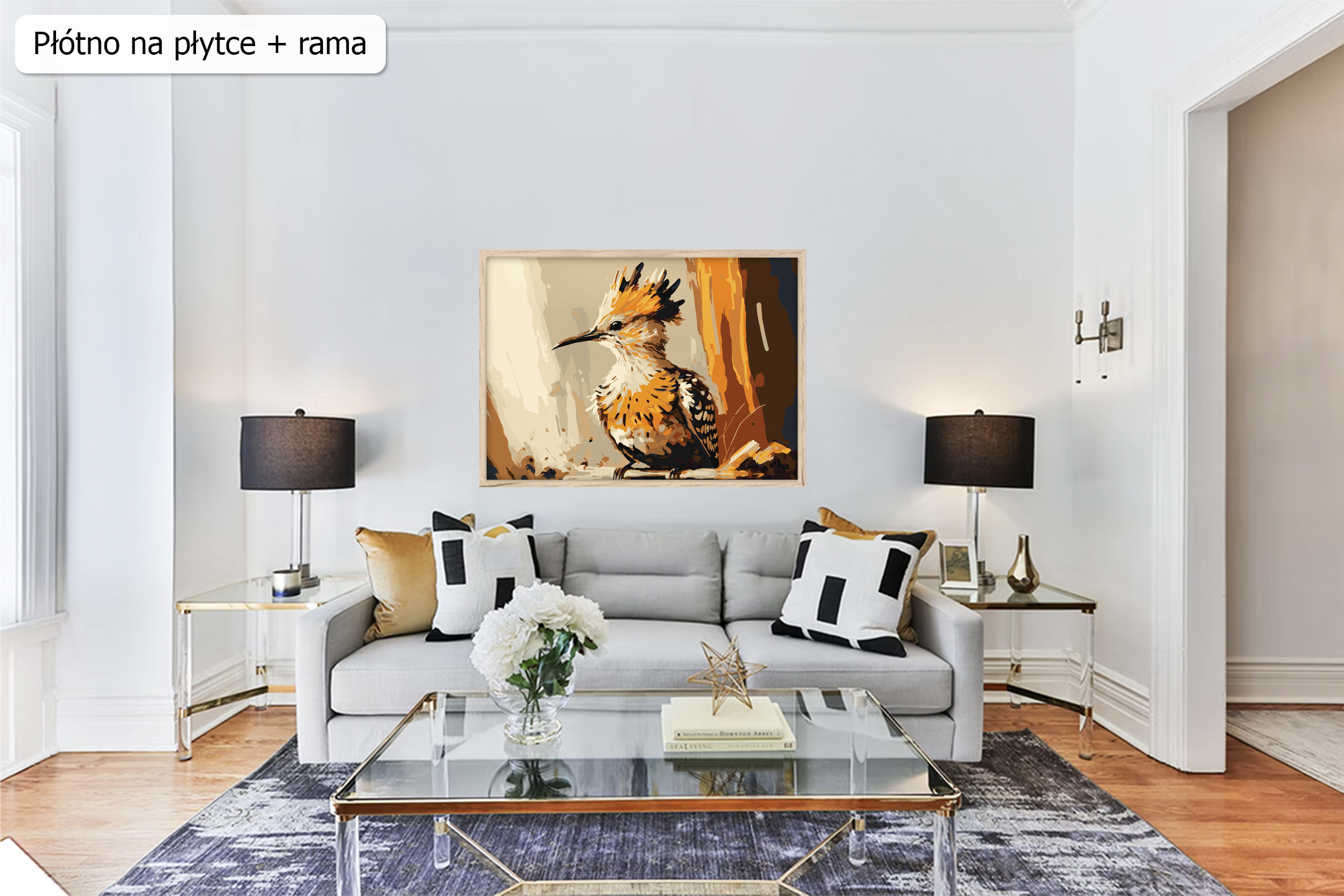 • wytrzymałą sztywną płytką z naklejonym zadrukowanym płótnem bez drewnianej ramy,