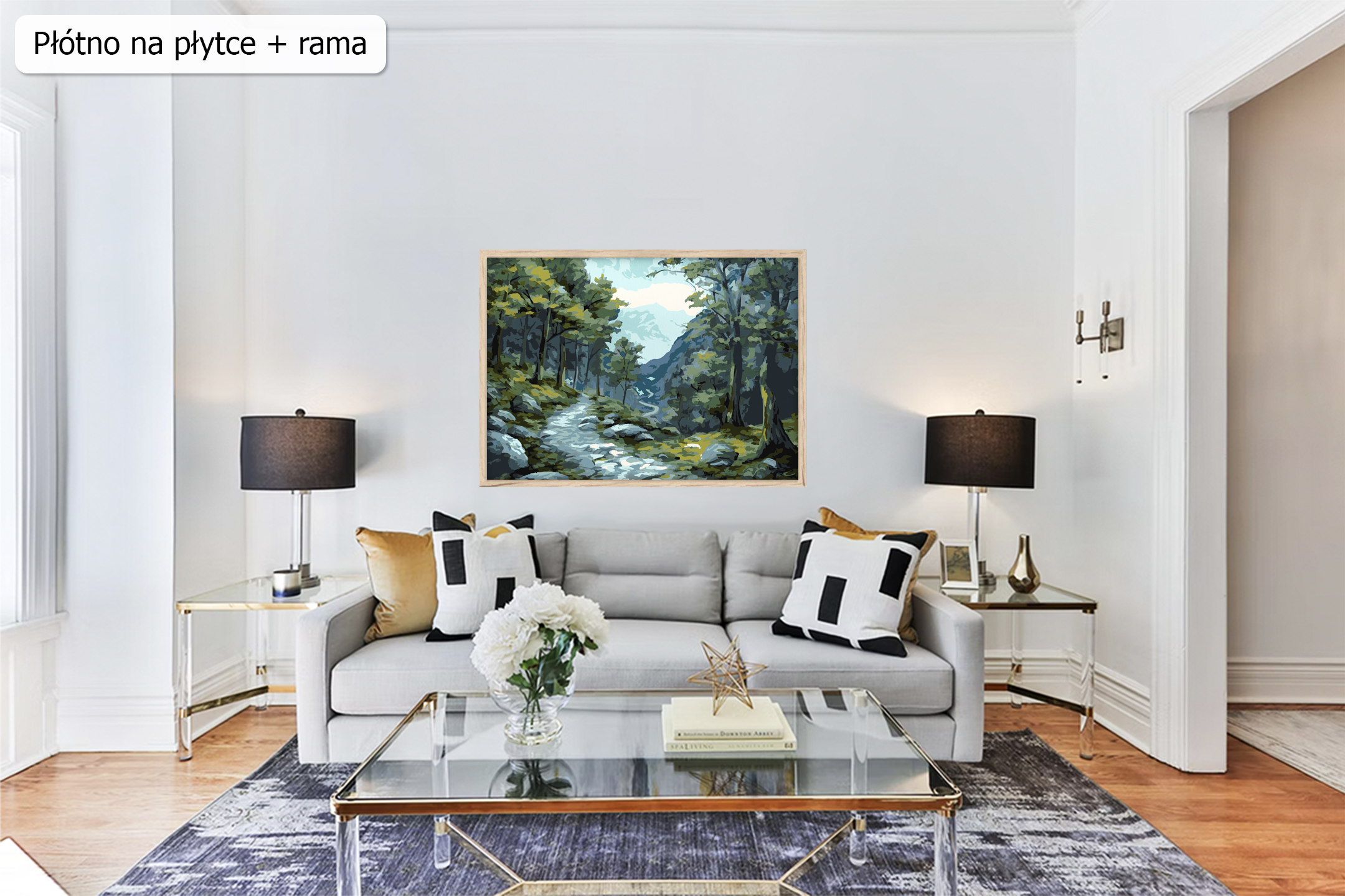 - wytrzymałą sztywną płytką z naklejonym zadrukowanym płótnem bez drewnianej ramy,