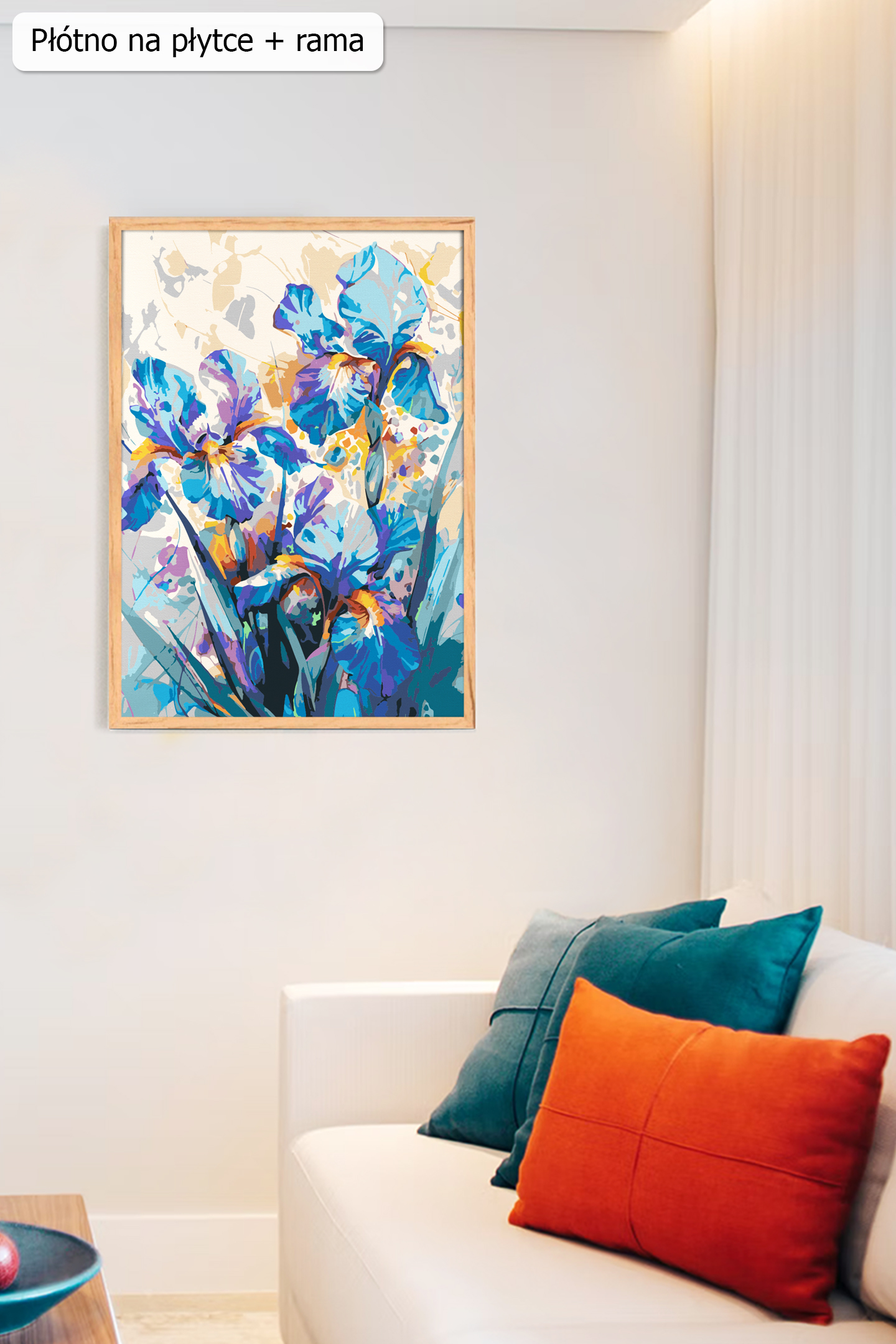 Obraz Piękne Irysy od polskiej firmy Akrylowo to wyjątkowy projekt do malowania po numerach, który przedstawia eleganckie irysy w intensywnych odcieniach niebieskiego, przeplatane subtelnymi fioletami. Kompozycję kwiatów ożywiają delikatne żółto-pomarańczowe akcenty, nadając całości ciepła. U dołu obrazu widoczne są pasujące kolorystycznie liście, które harmonijnie dopełniają kompozycję. Całość osadzona jest na jasnym tle, które podkreśla piękno i wyrazistość kwiatów, nadając obrazowi lekkości i świeżości. To idealna propozycja dla miłośników natury i eleganckich motywów florystycznych. Obraz ten oferujemy w rozmiarze 30 x 40 oraz 40 x 50 na blejtramie, płytce z ramą lub płytce bez ramy. Wykonanie tego motywu nie będzie skokmplikowane ponieważ poziom trudności oceniamy na średni. Całość wykonano ręcznie w naszej manufakturze akrylowo z najlepszej jakości materiałów i z użyciem najlepszych technik. Zapraszamy do zakupu. Możecie dokonać go Państwo bez konieczności zakładania konta/logowania się u nas.