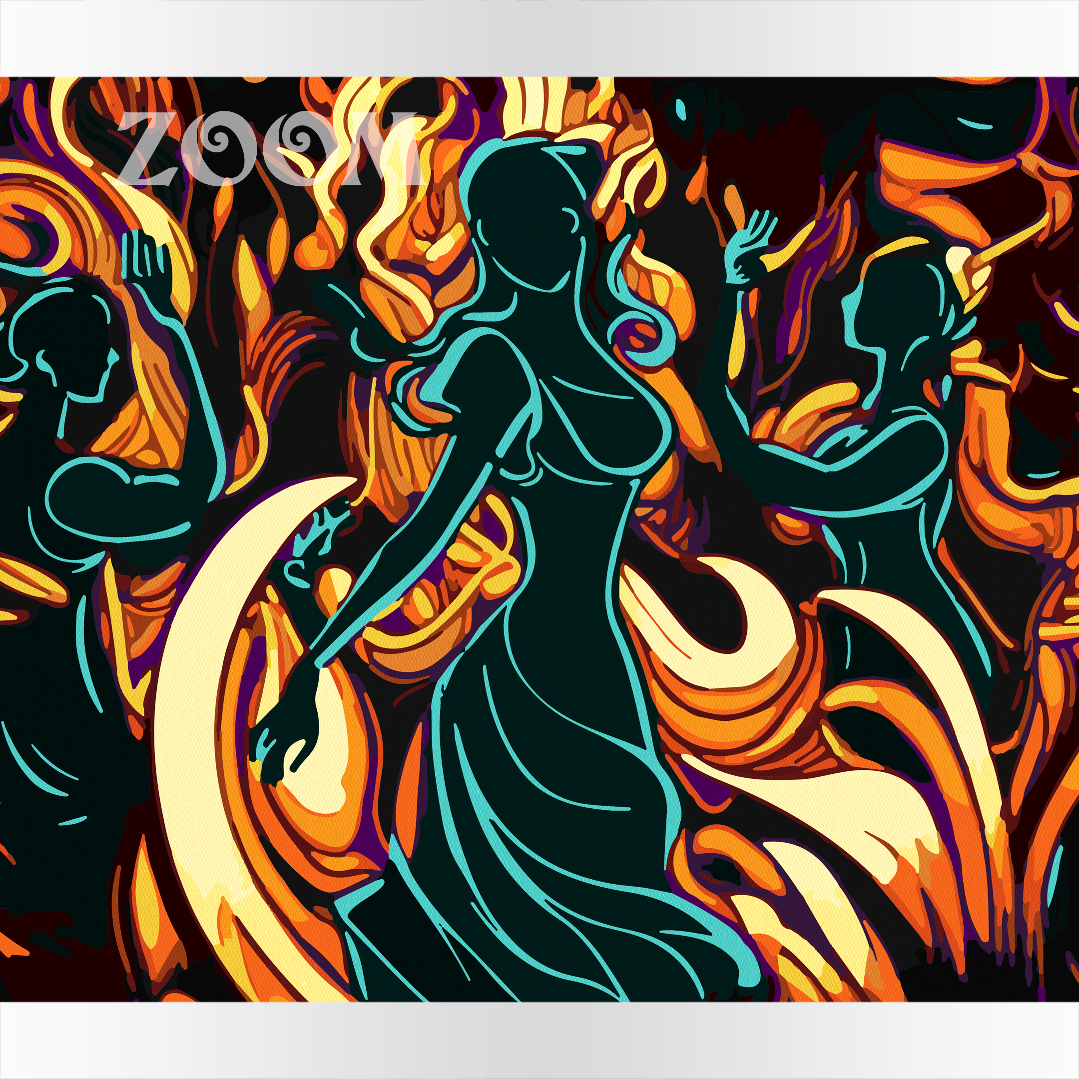 Płomienny taniec to abstrakcyjny obraz przedstawiający trzy kobiety narysowane turkusowym konturem. Postaci są całkowicie pochłonięte tańcem. Niezwykła kolorystyka tego małego dzieła sztuki przyciąga wzrok i uwagę widza. Abstrakcja pobudza też wyobraźnię i powoduje, że każdy z nas ma inne odczucia i wyobrażenie na temat tej oglądanej sceny. Płomienny tanieć to obraz, którego wykonanie nie powinno nastręczać trudności osobom, które już wcześniej miały do czynienia z malowaniem po numerach. Obszarów jest jednak sporo i wiele z nich jest długich i cienkich. Z tego powodu nadaliśmy naszemu dziełu wysoki poziom trudności wykonania. Zestaw jest najwyższej jakości, zawiera 18 różnych kolorów. Powstał w naszej pracowni włącznie z pierwowzorem. Akrylowo dysponuje prawami autorskimi do niego. Obraz można kupić w rozmiarze 30 x 40 i 40 x 50 cm na blejtramie, płytce z ramą lub płytce bez ramy. Zapraszamy do zakupu. Nie trzeba zakładać konta.