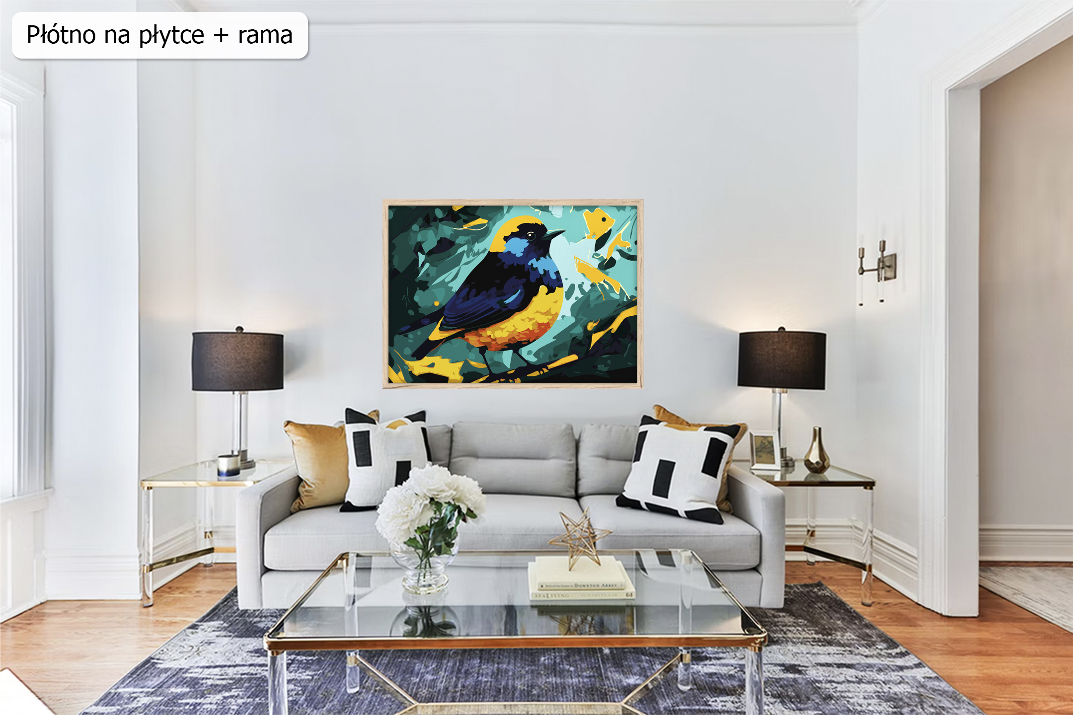 • wytrzymałą sztywną płytką z naklejonym zadrukowanym płótnem bez drewnianej ramy,