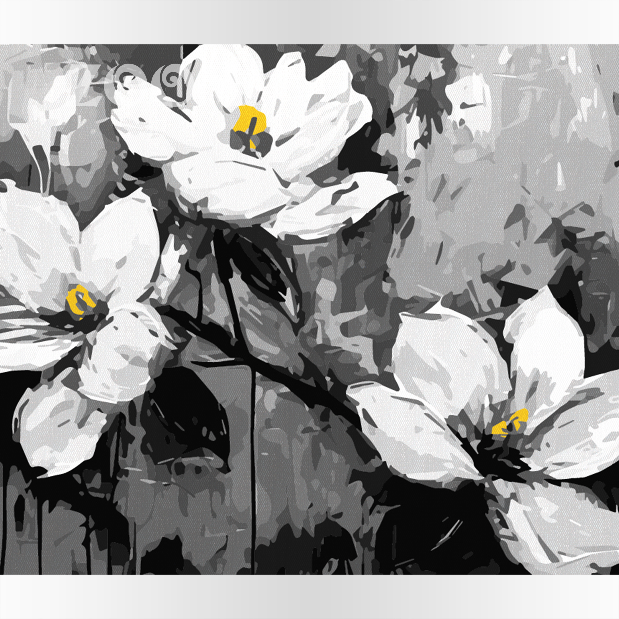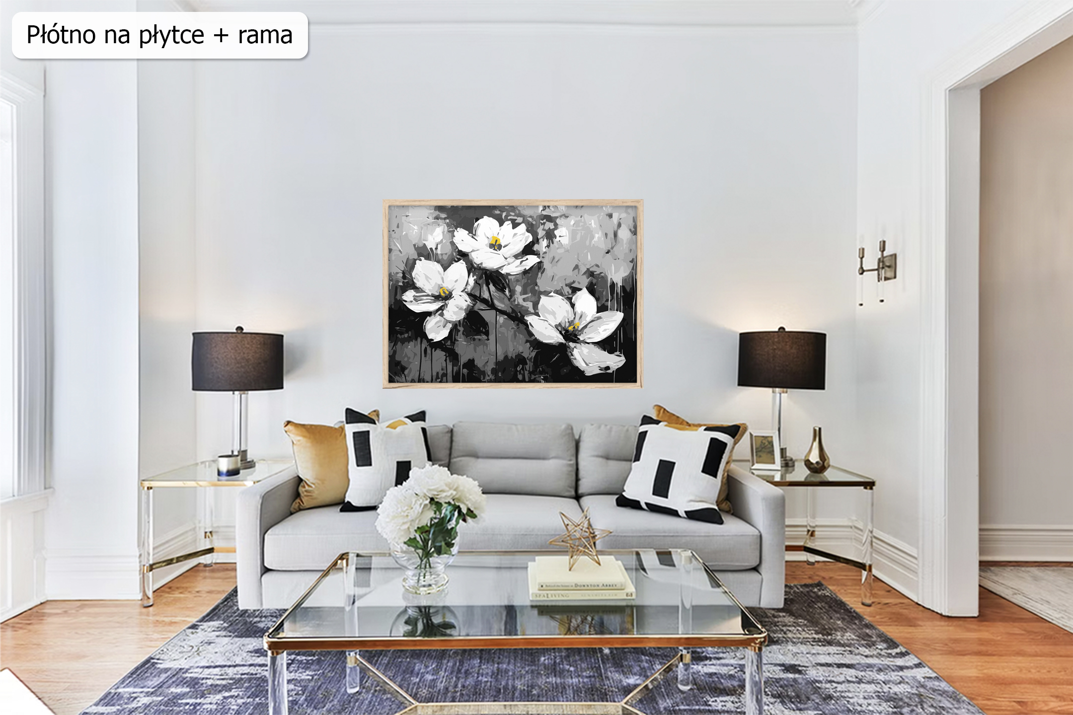 Żółty ton. Obraz malowany po numerach dla dorosłych od akrylowo przedstawia niezwykłą kompozycję trzech kwiatów na monochromatycznym tle, które przyciąga wzrok swoją surową elegancją. Delikatne płatki kwiatów w jasnych odcieniach szarości wydają się unosić nad tłem, które w prawym dolnym rogu przechodzi w niemal całkowitą czerń, by stopniowo rozjaśniać się ku górze. Ten subtelny gradient tworzy wrażenie głębi i tajemniczości, jakby kwiaty wyłaniały się z ciemności ku światłu. Centralnym elementem kompozycji są zaskakująco intensywne, żółte środki roslin, które kontrastują z resztą obrazu, przyciągając spojrzenia niczym promienie słońca w pochmurny dzień. Te energetyczne akcenty sprawiają, że całość tchnie życiem, choć dominuje stonowana kolorystyka. Dodatkowym, intrygującym elementem są subtelne zacieki farby na tle, które nadają obrazowi nieco abstrakcyjny charakter, jakby natura i sztuka spotkały się, by stworzyć coś unikalnego. Ten obraz to połączenie delikatności i siły, monochromatycznego spokoju i dynamicznej energii, które tworzą kompozycję cieszącą oko i pobudzającą wyobraźnię. Idealny do wnętrz, które potrzebują odrobiny subtelnego, artystycznego wyrazu. Żółty ton oferujemy w rozmiarze 40 x 30 i 50 x 40 cm na blejtramie, płytce z ramą lub płytce bez ramy. Wykonanie tego małego dzieła sztuki od akrylowo będzie ciekawym doświadczeniem. Poziom trudności jest średni. Motyw ma 18 kolorów. Całość wykonano ręcznie w naszej manufakturze z najlepszej jakości materiałów i z użyciem najlepszych technik. Zapraszamy do zakupu. Możecie dokonać go Państwo bez konieczności zakładania konta/logowania się u nas.